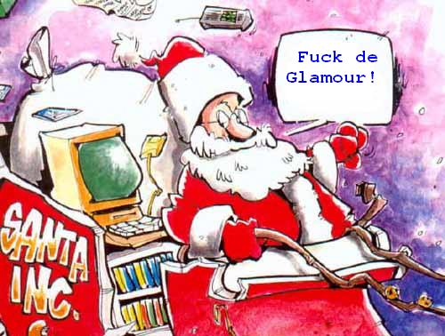 Стиль: Щеголеват. Окладистую бороду содержит в идеальном порядке. Носит короткий красный камзол на пуговицах. Штаны заправляет в кожанные сапоги. Руки прячет в тонкие белые перчатки наподобие бильярдных. На голове - красный колпак, в руках мешок с подарками, на носу - очки-"велосипед".